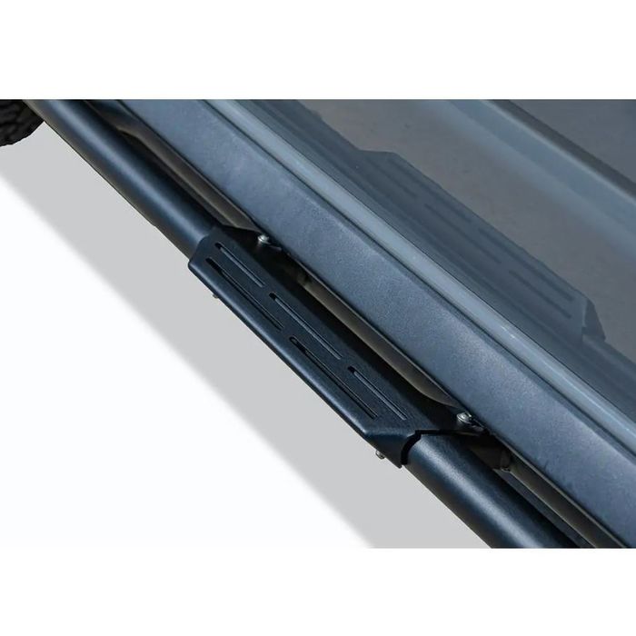TJM's chassis mounted Rock Sliders for the Suzuki Jimny feature multiple mounting positions and are made from thick heavy duty steel tube. The strong 51mm tube design ensures that the vehicle is supported across the entire length of the rock slider, this providing comprehensive protection for your 4x4 side sill panels and lower doors when traversing challenging terrain on your planned 4x4 adventures. TJM have designed and tested the new rock sliders to ensure they pass all ADR requirements and have also included an optional step plate to assist with getting in and out of your Jimny. Finished in durable textured black , you can negotiate the toughest terrain in your Jimny confident that the TJM Rock Sliders will provide the protection you need to Take the Lead