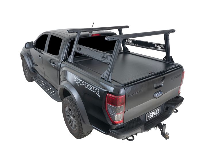 HSP Load Rack for the HSP Electric Roll R Lid (suits most Double Cab Ute makes and models). This load rack represents the perfect blend of functionality and aesthetics. Designed for today’s worker and adventurer, the HSP ladder rack, in its full set, can support an industry-leading weight of up to 150kg. Manufactured from precision-extruded aluminium and coated in a premium semi-matte black, the Load Rack provides a more stylized finish than traditional tubular racks. Additionally, with four channels on each leg and top bar (totalling 24), it’s ready to accommodate a variety of accessories from your favourite brands like Rhino Rack or Yakima and more.