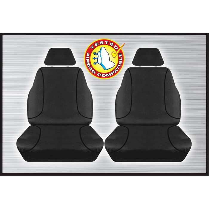 BLACK CANVAS WATERPROOF FRONT SEAT COVERS FOR MITSUBISHI TRITON 2015-2023.