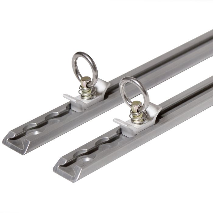 Core Trax 1000mm tie-down tracks are made from 6061-T6 aluminium alloy and powder coated silver. They are custom manufactured to align with the steel tubes in your DECKED decks subframe, allowing you to mount extra hold points on top. The track can be oriented towards the cabside or tailgate side of your ute tray. The 4 attachment loops can be placed at 2.5cm increments along the trax. These DECKED custom Core Trax 1000 are beveled 45 degrees at both ends to avoid snagging your stuff.